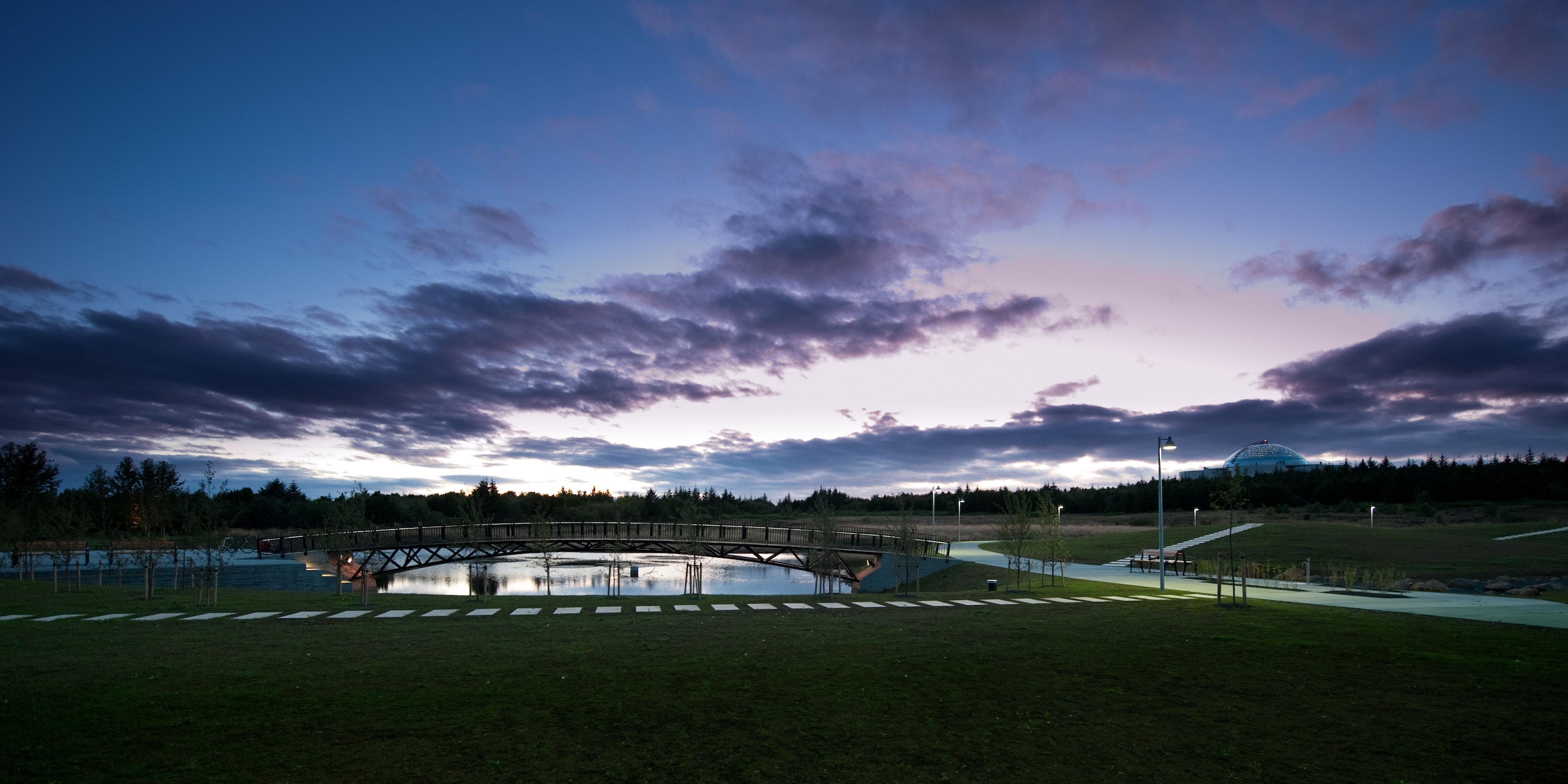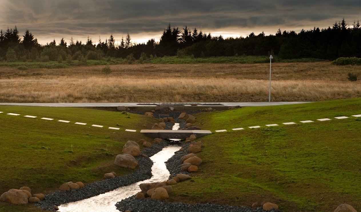 The main idea of the cemetery is implemented as an archipelago or islets in wetlands surrounded by a forest, marchland and an outdoor recreation area. The cemetery weaves into the landscape creating a whole with the surroundings.