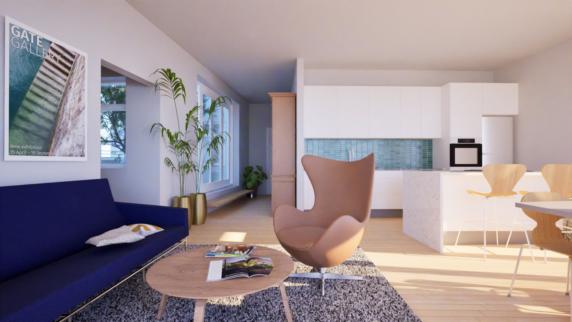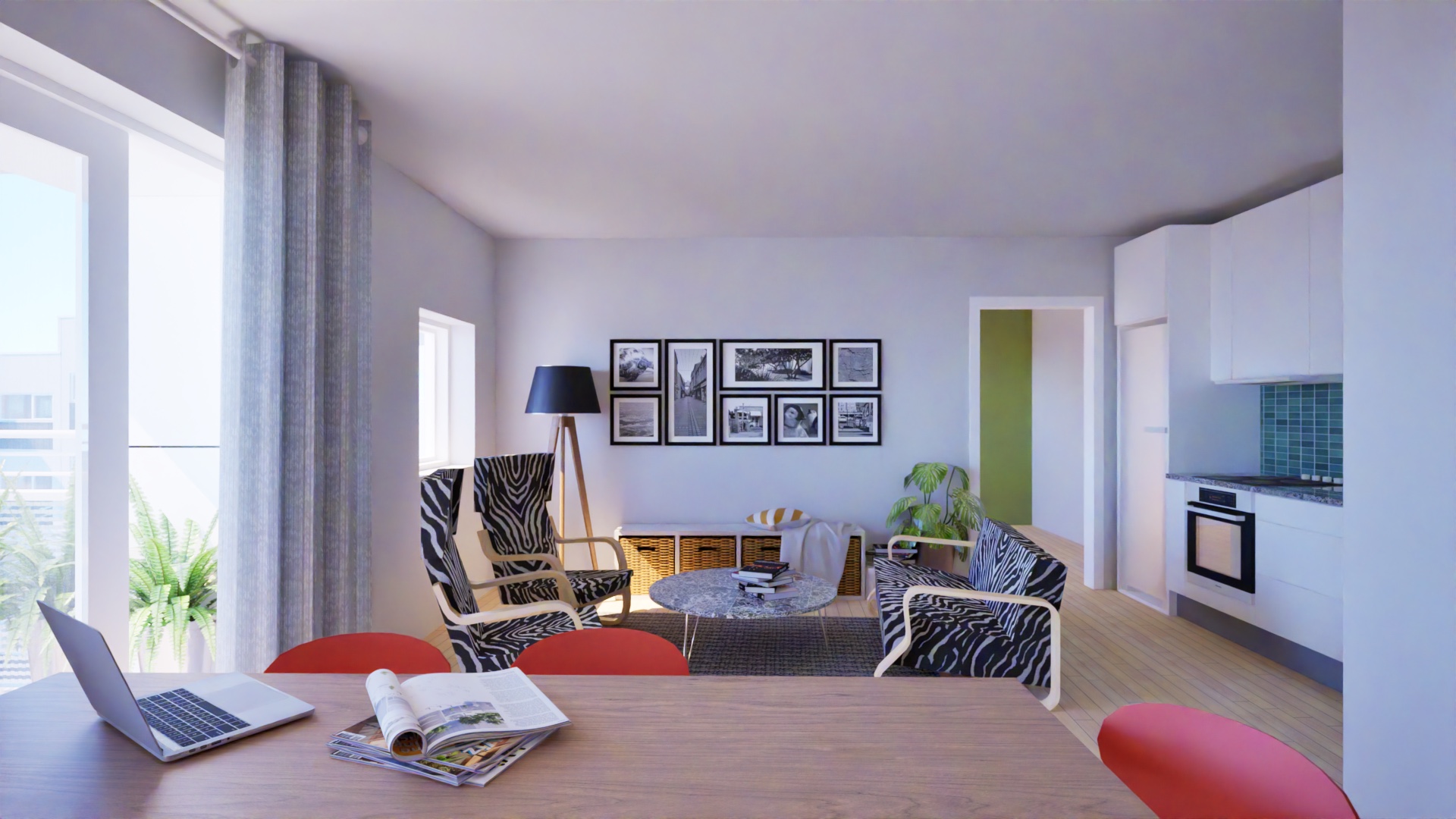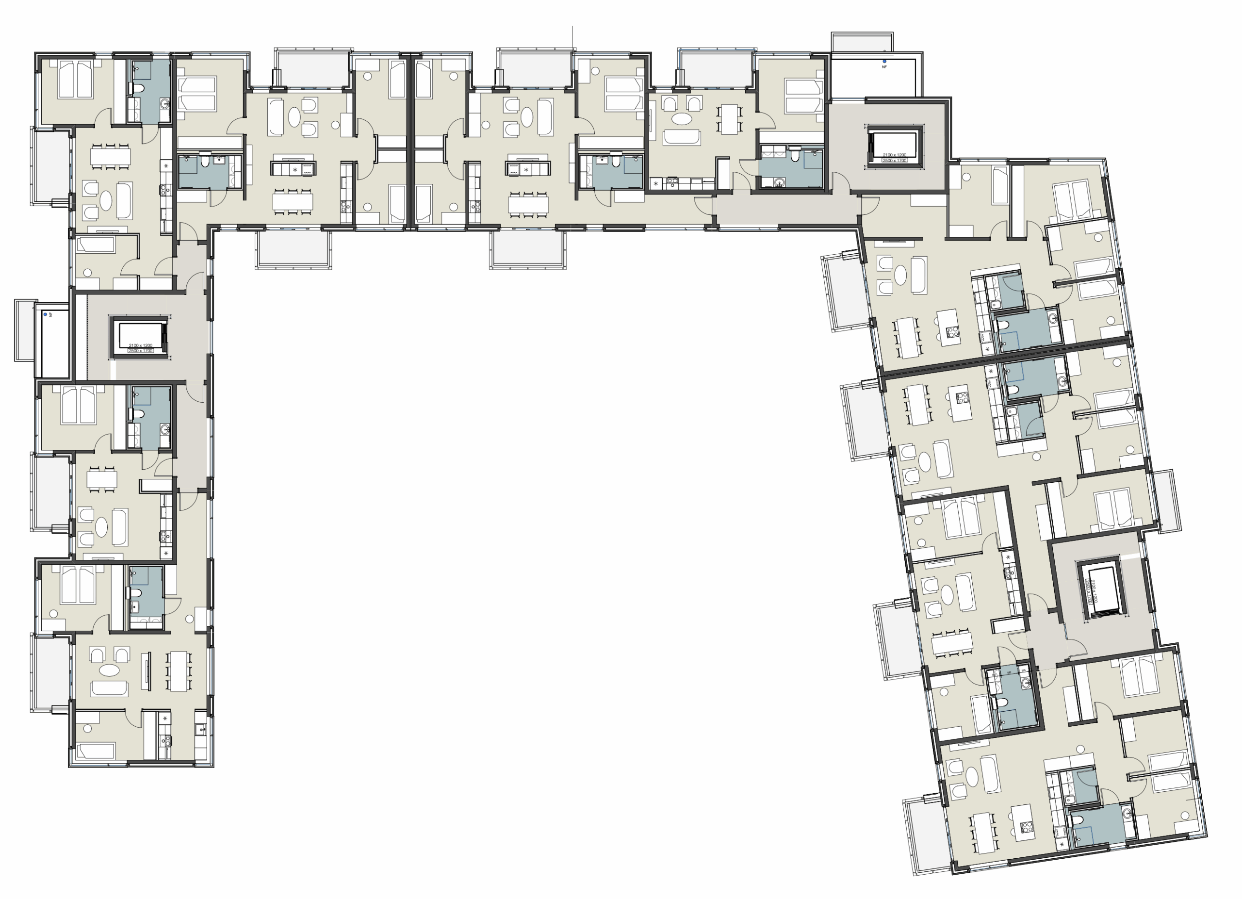 51 íbúð er í húsinu. Meðfram Dugguvogi eru 3 íbúðir á jarðhæð með salarhæð 3.5 m sem gerir kleift að breyta þeim í atvinnuhúsnæði síðar meir. Íbúðir eru af mörgum stærðum, allt frá litlum 63 m2 tveggja herbergja og upp í 134 m2 fimm herbergja íbúðir.