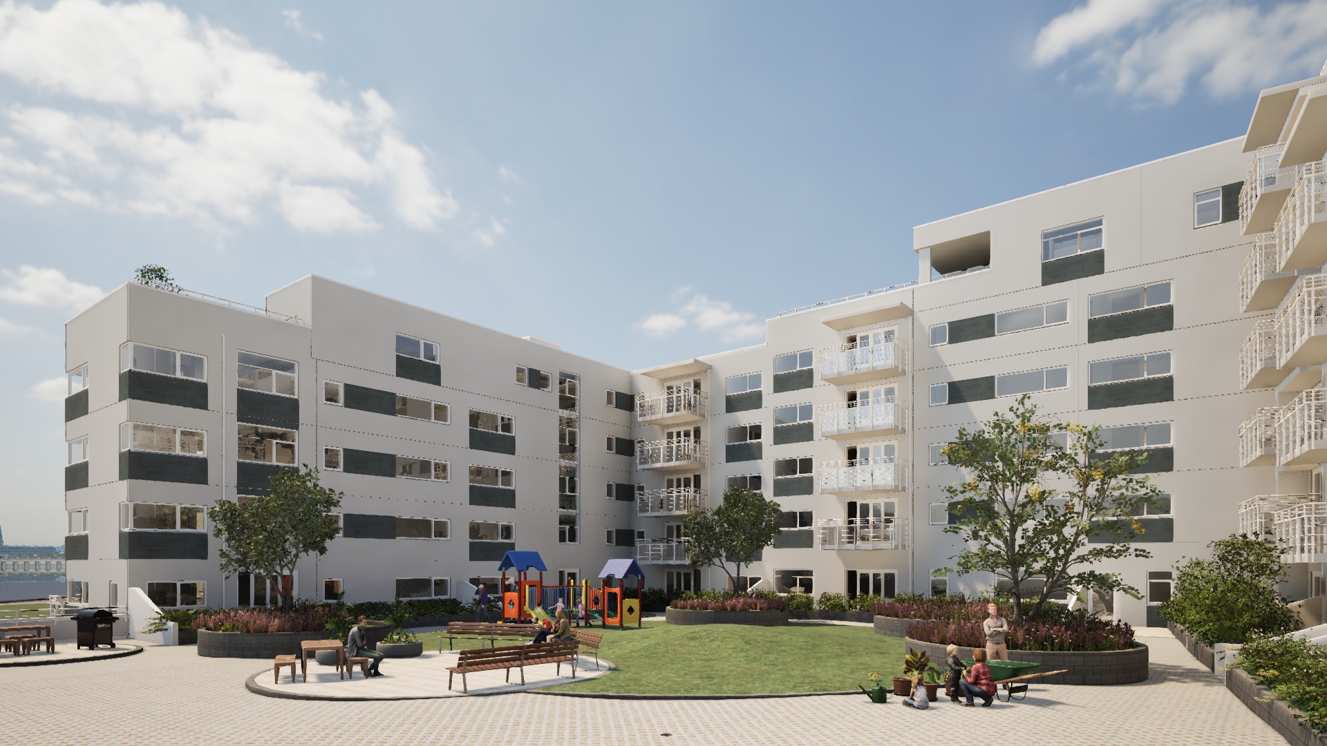 Byggingarnar eru 5 hæðir syðst og trappast upp til norðurs í sex hæðir. Þremur íbúðarhúsum er raðað umhverfis garðrými á lóðarmörkum. Lóðin snýr til austurs og flestar íbúðir eru með með útsýni á sjó. Inngangar snúa að götu, auk þess er aðgengi frá hverju stigahúsi út í garð.